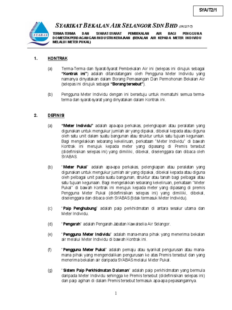 Permohonan bekalan meter bomaba syabas. Syarikat Bekalan A Ir Selangor Sdn Bhd 393257 If Syabas Discovers That The Information Is False Syabas Has The Right To Terminate The Water Supply Services Agreement. Pemasangan meter telah siap dan Bekalan Air memuaskan Tukang Paip Tarikh J0885 PNMB-JB. SYARIKAT BEKALAN AIR SELANGOR SDN BHD SYABAS Ibu Pejabat Peti Surat 5001 Jalan Pantai Baharu 59990 Kuala Lumpur.