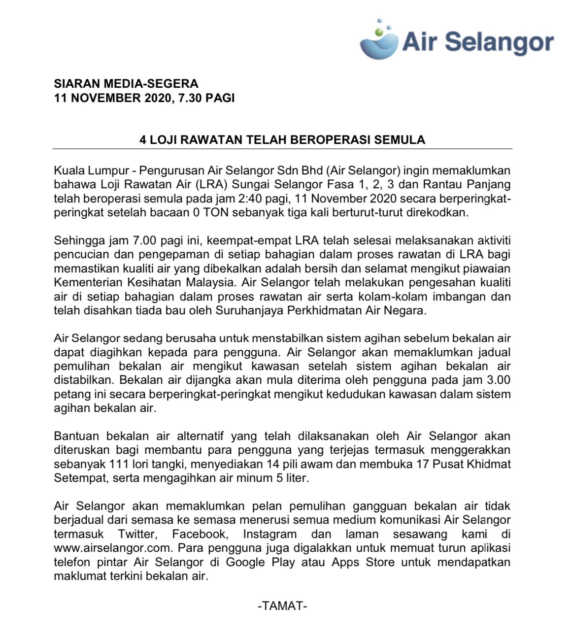 Air Selangor On Twitter Siaran Media 4 Loji Rawatan Air Telah Beroperasi Semula