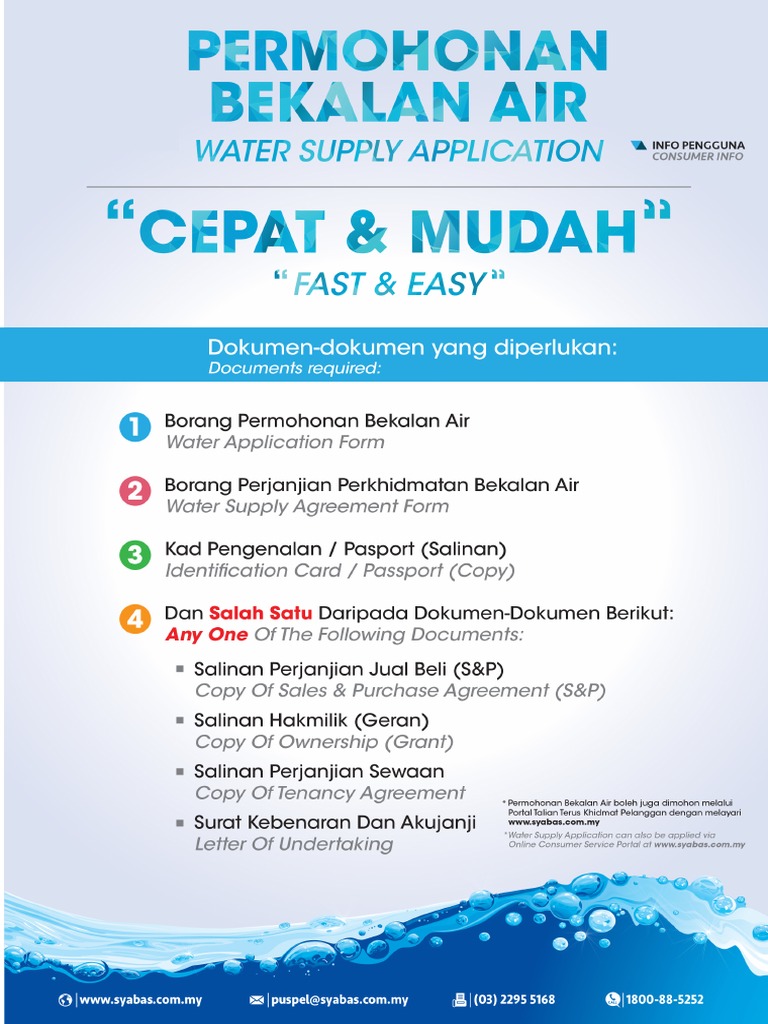 Perjanjian Perkhidmatan Bekalan Air hantarkan dua 2 salinan. GANGGUAN BEKALAN AIR DI TAMAN SELAYANG MUTIARA BATU CAVESSELANGOR. Walau bagaimanapun pemilik baharu perlu membayar caj duti setem dan deposit untuk membuka akuan baharu.